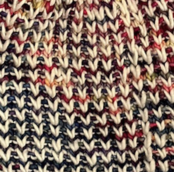 In the Carmel Beanie (Ravelry Link) pictured above, I alternated a variegated yarn with a solid off-white yarn. The result not only broke up the pooling of variegated yarn, but gave a complicated-looking texture that was easy as knits, purls, and slip stitches! No fancy colorwork charts to follow, just a simple pattern repeat.